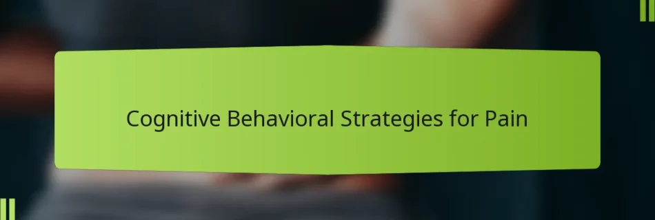 Cognitive behavioral strategies for pain management are effective techniques designed to help individuals reshape their perceptions of pain and develop healthier coping mechanisms. By focusing on altering negative thought patterns and enhancing coping skills, these strategies address the psychological factors that contribute to chronic pain, ultimately improving both pain management and overall quality of life. …